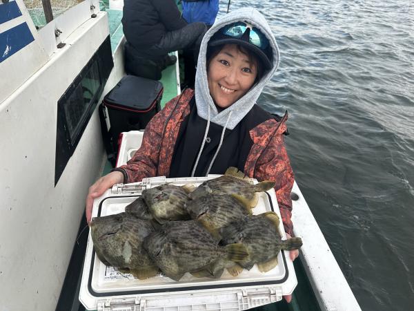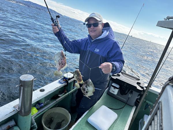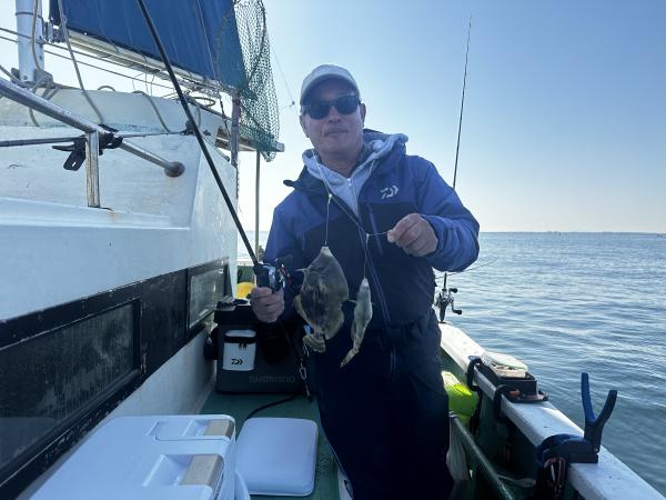 時に連発、船内パラパラと釣れる場面もあり早々に総員カワハギゲットできていましたね。
